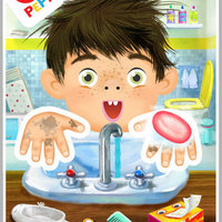 The app has 4 parts as different situations in which this cute character PEPI – a boy or a girl to choose – appears: at the sink, washing clothes, going to a toilet and taking a bath.