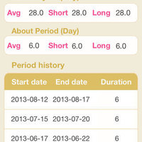 4. Can be set for each menstrual cycle according to the actual, you can view the historical record and compute the average cycle data.