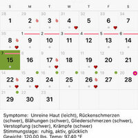 * View your current and future period dates, ovulation and fertile days, moods, symptoms, weight, temp, and fertility notes in a simple month-view calendar.