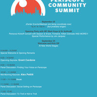 The Periscope Community Summit is the first ever user generated conference for and by Periscope users. We are here because we listened to the amazing Periscope community. Hundreds of scopers from all walks of life and from all across the globe will descend on the Big Apple from Sept. 22-24th for New York Scope Week.
