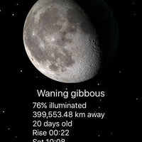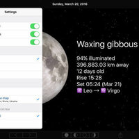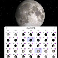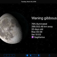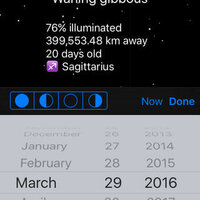 * Swipe left and right to move forward or backwards in time to see what the Moon will look like in the future or past.