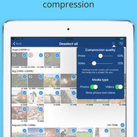 Batch compress multiple photos and videos at once and save 90% of storage space on average. Compressed media preserves the metadata such as date, location, album name, etc., so the camera roll doesn't get cluttered after compression. You can also control the compression quality as you like(lower quality means compression into smaller file size). You can compress up to 500 photos & videos in the free version.