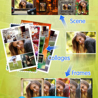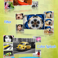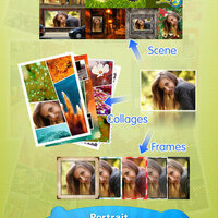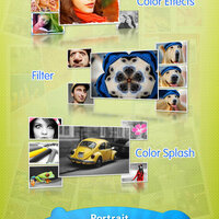 Quick edit, color effects, portrait, text adding, photo enhancing, frame and scene, other effects, album management, photo sharing