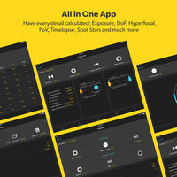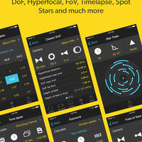 - Calculators: Long Exposure, Timelapse, Spot Stars, Star Trails, Hyperfocal Table, DoF, FoV