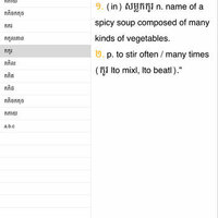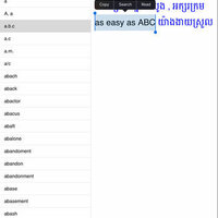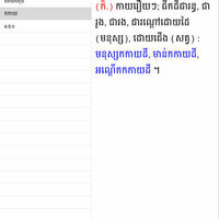 Features: - Combine 3 dictionaries: * English-Khmer * Khmer-English * Khmer-Khmer (Chuon Nat Dict v2.0) - Text-to-Speech - Embedded Khmer Unicode fonts - Built-in Khmer Keyboard - Fast and smart searching - Comprehensive Definitions
