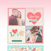 Up to 10 pictures can be uploaded and transformed into a fancy collage of your choice. For example you can choose the globe or post stamps template to mix your travel photos. Or add funny winter portraits of your friends to a big snowflake or Xmas garland. If you want to have a joint selfie with your sweetheart, just select one of our cute double photo frames and that’s it!
