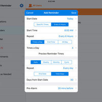Pill Reminder is an easy-to-use and reliable app that helps you remember to take your medications at the right time. It allows you to create any type of recurring reminders (every X hours, specific times, daily, weekly, monthly, every X days, etc). It tracks the remaining quantity of each medication and shows a refill alert when running low.