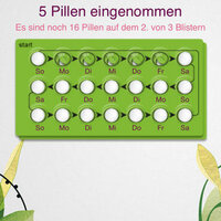 • diskret oder mit unterschiedlichen Tönen an die Einnahme der Pille erinnern.