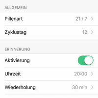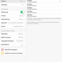 You can configure Pilly! just to fit to your needs. You can choose between several packaging sizes (21, 24 and 28 pills) and define in which interval you want to be reminded to take your pill. If you wish you can define different notification times for each day of the week. You can also protect your data with a passcode.
