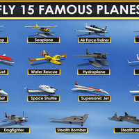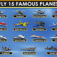 Fly 15 Amazing Aircraft including Civilian Passenger Jets, Military Stealth Planes, Private Jets, Training Props and World War 2 era planes.