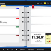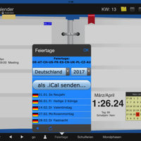 This calendar in the form of a Pocket Calendar accesses all of their calendars, and provides a week clearly portraying the calendar you can choose to make new records, delete records or change. In the weeks you can navigate back and forward. In addition, the birthdays of the next 30 days and will be displayed in the week. Furthermore, Holidays, school holidays, moon phases. This you can enter by .iCal file in your calendar.