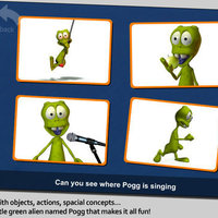 Pogg Cards is a flashcards and quizzing app designed to help kids learn a variety of words, including actions and spatial concepts. It stars Pogg, a little green alien, and he demonstrates over 50 words through “touch the picture where Pogg is…” quizzes.