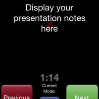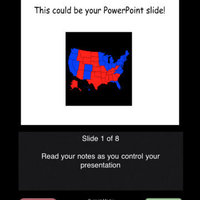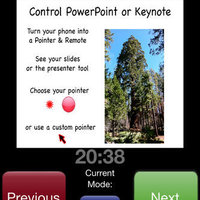 Turn your iPhone or iPad into a pointer and controller for PowerPoint or Keynote presentations. Has 'Next Slide' and 'Previous Slide' controls, and can show notes from presentations on the iPhone display along with a timer. Pointer icon can easily by replaced by any image, which could be used for humorous purposes. Touch the screen to show the pointer - which is controlled either by dragging your finger around the screen (easy) or by orientation (takes a little practice) - your choice.