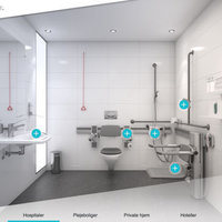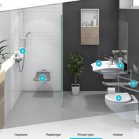 Pressalit SPACES is a digital solution from Pressalit Care designed to communicate and visualize specific bathroom layouts suitable for people with disabilities. Our goal is to give you insight into the flexibility that Pressalit Care’s wide assortment of individual solutions offer residents in various types of institutions and homes – illustrated by concrete examples of layouts suitable for hotels, hospitals, assisted living facilities as well as private homes.