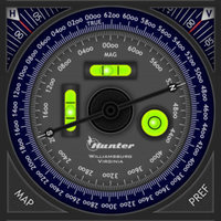 Pro Compass offers nine different compass modes with needle, pointer, and rosette styles capable of displaying degrees, quads, or mils. The needle mode shows a proper "direct read" display with a North-South needle and reversed East-West convention. In all display modes, Pro Compass shows both magnetic and true direction simultaneously, with a rotating outer true ring that is automatically adjusted for local magnetic declination.