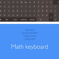 - Math keyboard with numeric keypad, greek symbols, subscript and superscript characters (only unicode superscript).