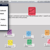 The app is aimed at process managers, project leaders and managers whose job involves describing and optimising business processes. It enables the user to describe process charts quickly and conveniently and thereby increase the efficiency of projects and organisations. Processes created with the Process Modeller app can easily be printed or shared.