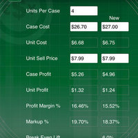 Profit Story is a calculator that allows users to calculate Sell Price, Cost Price, Gross Profit Margin, Markup and Break Even analysis for product pricing purposes using Unit and/or Case information.