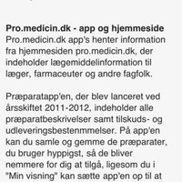App'en indeholder information om alle præparater markedsført i Danmark inklusiv information om tilskud - og udleveringsregler. Informationen er målrettet sundhedsfaglige og svarer til præparatbeskrivelserne i pro.medicin.dk.