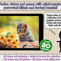 Photos and videos feature many kinds of puppies, kittens, bunnies and other furries. Photos and videos are professional and vivid, and content is chosen to keep children's attention in the app itself. Videos will autoplay, they cannot be paused or anything confusing. User can browse through the collection by swiping along, or tap a screen and choose his/her favorite clip/photo from the appearing cue sheet. Hard to explain briefly but so easy to use in real life!