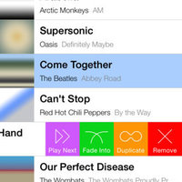 Queue has a gesture-friendly interface. Pinch songs apart to insert songs between them. Swipe on a song to see more controls. Tap, hold and drag songs to re-order them. Queue supports all iOS screen sizes.
