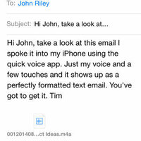 Visit nFinity's website or YouTube channel to view demo video of "QuickVoice2Text Email."