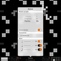 Quincy ships with three sound modules (Chroma, Gregorian and Pentrix) with many more to come. Each module uses its own algorithm to create sound but also defines the key and a base scale to be used as tone material. The Chroma module is geared towards atonal music with several symmetric and chromatic scales. The Gregorian module employs church modes and the Pentrix module offers 27 types of pentatonic scales.