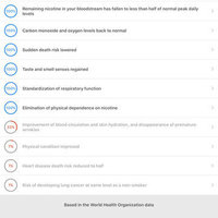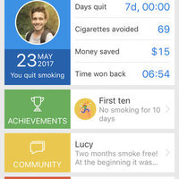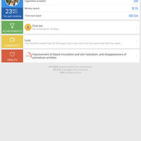 Also, QuitNow! will provide you with W.H.O.-based (UN's World Health Organization) indicators on your health improvement process, and an achievement list you will unlock one by one, as time passes, motivating you to achieve your goal.