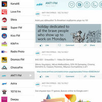 The best social radio application for Cyprus. - Stations You can listen to your favorite radio stations just by tapping on them. - Social Connect with people by adding comments to the radio station. Find shared interests. Music is definitely one! - Top Radios Discover the most popular stations in Cyprus. Tap Top Stations and find what others are listening.