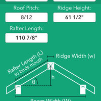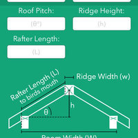 Quickly find roof pitch, rafter lengths and ridge height, based on room and ridge width.