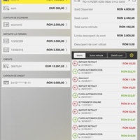 • Vizualizare conturi (istoric, detalii): curente, economii, depozite, carduri de credit, credite