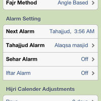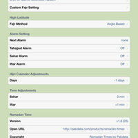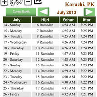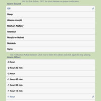 * Alarm options can be set to start selected minutes before Iftar/Sehar.