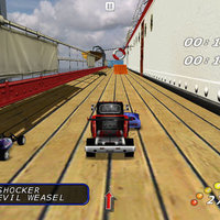 Drive your car through a wide range of tracks, including suburban streets and through gardens and houses, over rooftops under the stars, through museums and cruise ships, and even a Wild West ghost town!