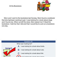 • Unique double-check scoring system! In addition to a cumulative score at the end of each section, individual scores are calculated for each story. This immediate feedback keeps students on track for success.