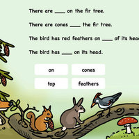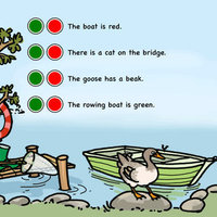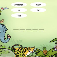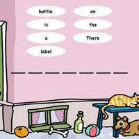 Build a sentence by starting with the word that has a capital letter. When the sentence is completed, the sentence is read aloud.