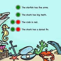 Press the green button if the sentence is correct. Press the red button if the sentence is wrong. Press sentence if you want it spoken.