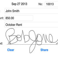 First, fill in “From”, “Amount”, and “For” fields. Next, use your finger to sign your name. Finally when you are done, you