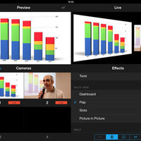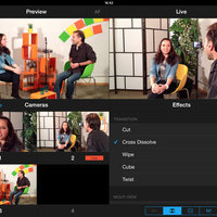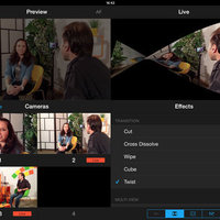Every time the “->Live” button is pressed, the app switches to the selected camera. Several transition modes are available: cross fade, wipe, cube and more.