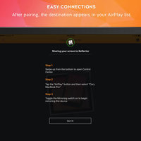 Use auto-detection (Bluetooth and network), Quick Connect or QR codes to pair to Reflector 2. Once paired, the destination will appear in the device’s AirPlay list.