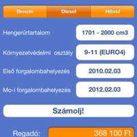 Regisztrációs adó kalkulátor gépkocsira (benzines, diesel és hibrid), valamint motorkerékpárra.