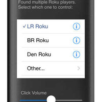 (2) Click on the "(i)" button in the upper right corner to check the list of recognized Roku devices, wait ten seconds for updated information, then tap on a player name to select it. If the player is not recognized, to add it manually tap on "Other..." and follow the instructions