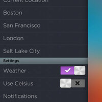 2. Beautiful swipe implementation to see the times. Follow the dark purple color with your thumb to see the sunset time appear.