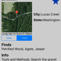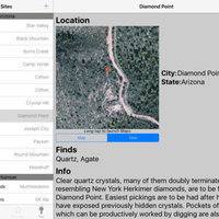 SITES - With over 160 sites, you can choose a site with the Map that also shows your location, or with the List which is separated by State. Each site has a description of the area and what you may find there. You can even add your own sites by plotting the GPS coordinates on the map. RockHound was not intended to be a complete guide to every site, they are mostly in the US. The power is in being able to add your own sites anywhere in the world.