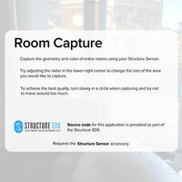 Capturing a 3D model of an entire room is now delightfully easy.  Simply tap 'Start', and slowly pan around your room, and a model is built in realtime as you watch.  When you've finished, the model can be explored with natural touch gestures.