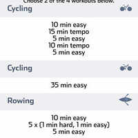 • 2 cross-training workouts each week (choose from two cycling, a swimming and a rowing workout each week)