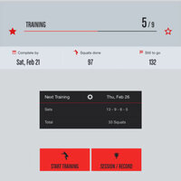- Three levels based on scientifically developed training plan to reach 150 squats