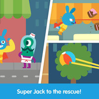 KAPOW! Jack the rabbit bursts into the sky as the Sago Mini Superhero! Fly with Jack as he lifts impossible weights, powers up on carrots and makes things right in the city. Whether he is helping ducks cross the street or sharing ice cream with an octopus, Jack is here to save the day!
