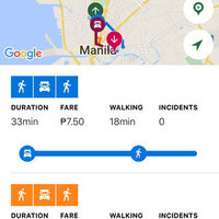 • Easy comparison of routes on duration, number of jeepney/bus/train rides and stops, and cost.