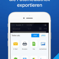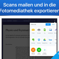 Just scan any document and tap the "Share" button. You can send scanned documents via email, export to Photos or open in any 3rd party application. With Scanner Mini you can also print your documents or even fax them.
