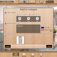 * MULTIPLE HOTSPOTS can be added to a scene. Hotspots can include: sound, text labels or can link to another scene.